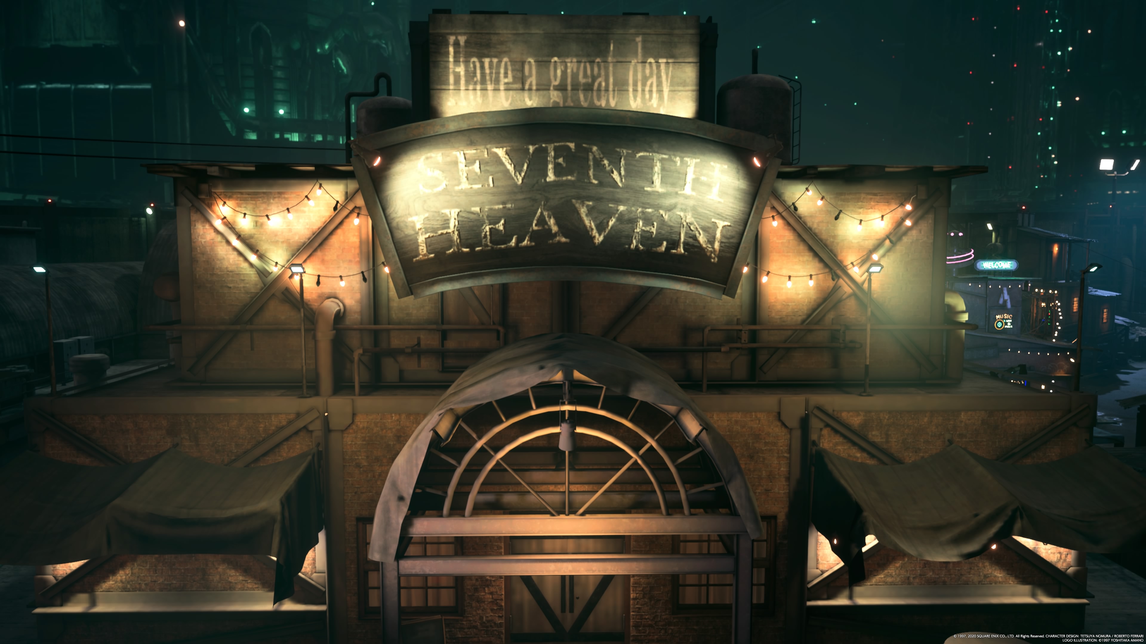 Midgar is prettier and better looking than I could remember in the Remake though. Every panel and texture look right and purposeful. The lights that are bouncing off the panels also reflect very well like they are ray-traced. There are more colours in Midgar’s slums that I could remember too from the original game. Of course, Seventh Heaven is even more detailed than before and looks even better than before.