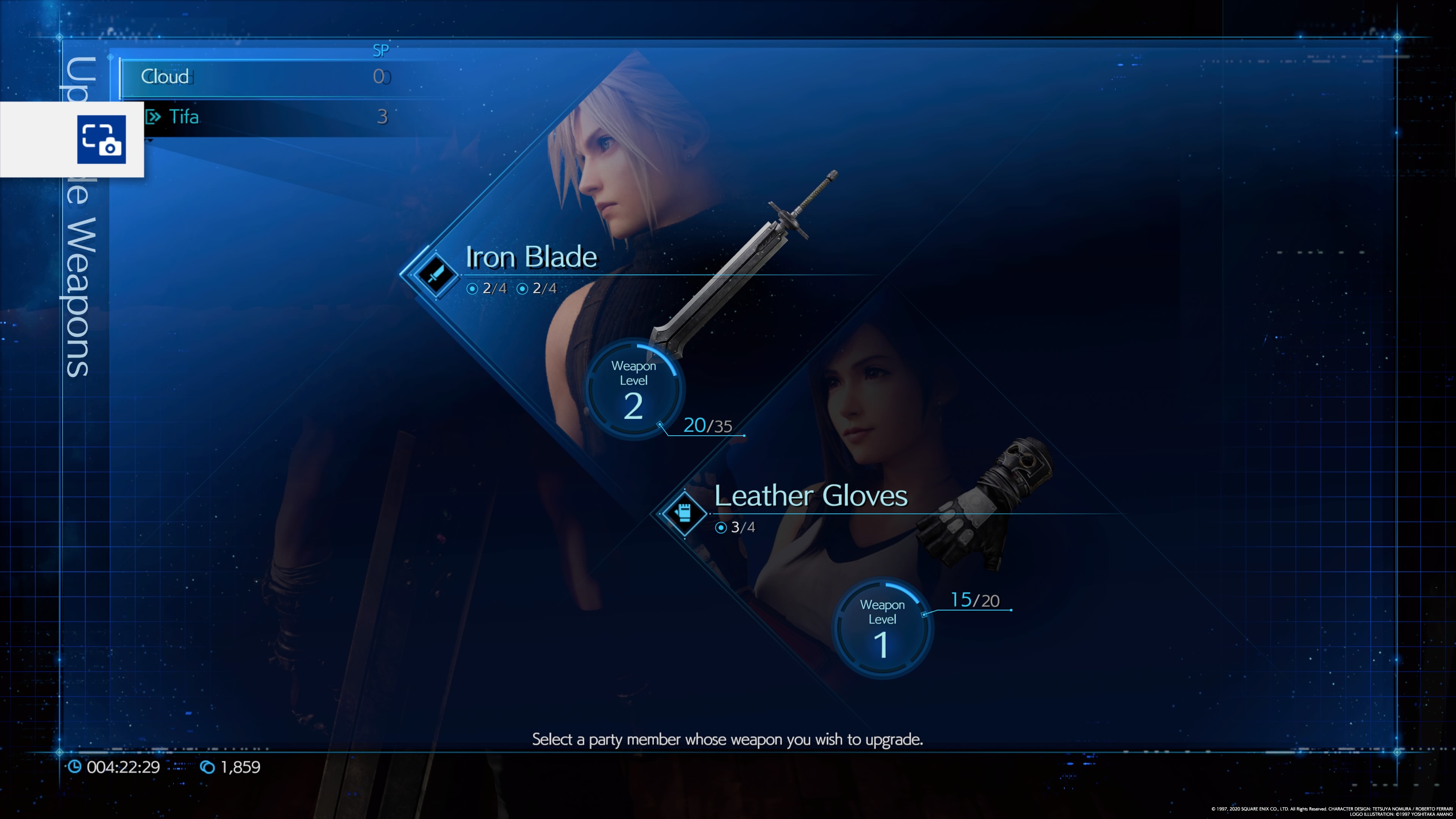 The leveling system in this game is a little different compared to the original game though. You can still equip characters with different weapons that you buy or find through your explorations in the game. Each weapons has their own strengths and weaknesses. You can upgrade them when you earn something called SP (Skill Points). You use these SP to upgrade your weapons to fit more Materias, to up your damage points so that your next battle is slightly easier, and what not. We suggest you stick to some of the original weapons that your characters come with. We find that they are the most powerful even after unlocking and obtaining the last of weapons for each character.