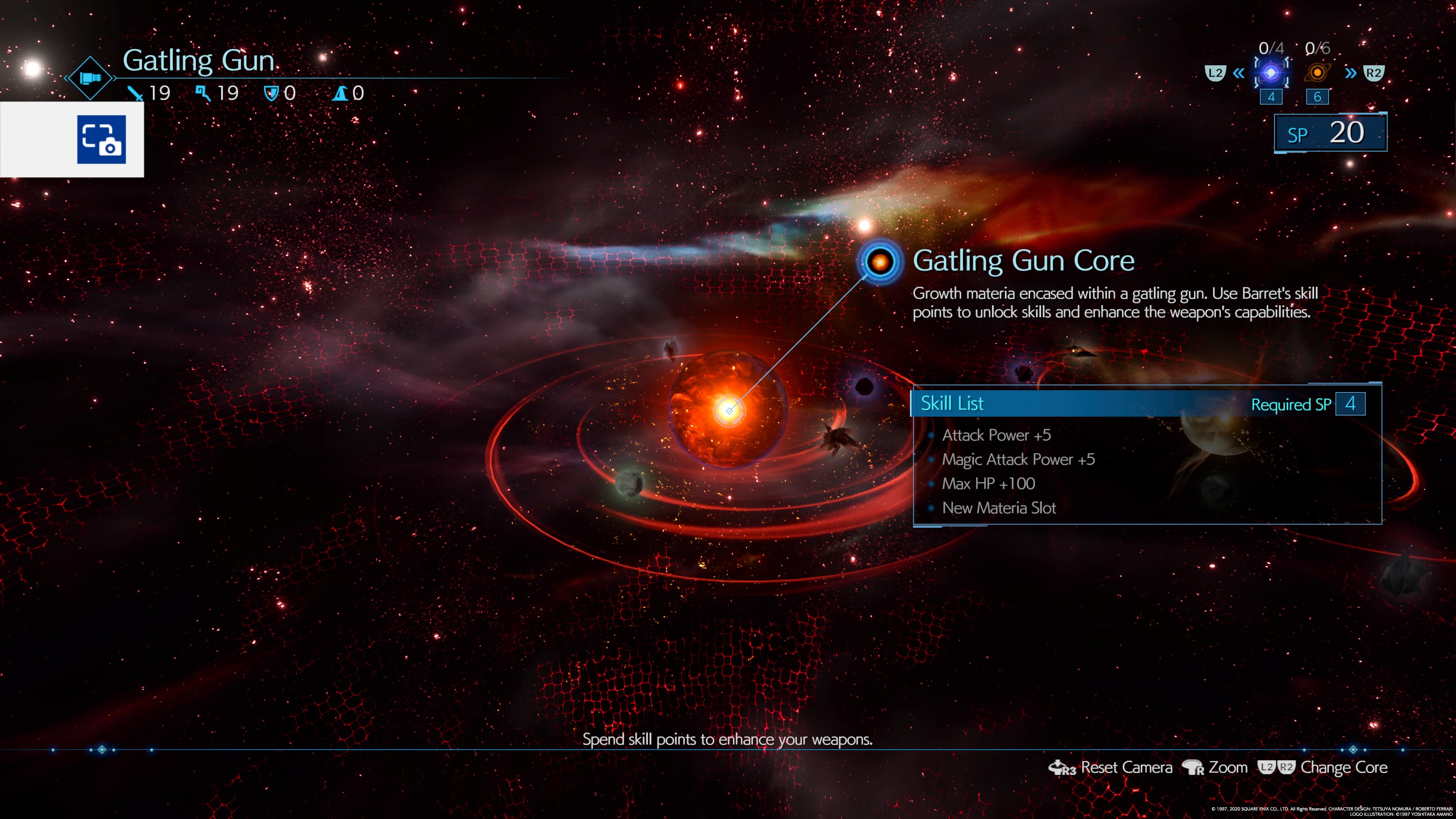 The weapon upgrade screen are done in orbs in what looks like a galaxy. It looks like a galaxy of solar systems. Each planet is an upgrade and each solar system is an upgrade tree that reveals itself with different tiers and levels.